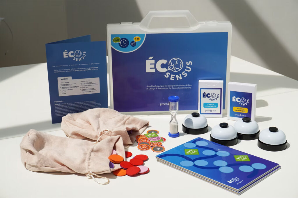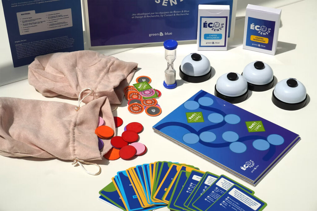Pour aborder des sujets complexes du quotidien de travail avec vos équipes, nous avons créé un jeu de plateau, l’Éco-Sensus, qui mobilise les leviers de la gamification et des normes sociales et engage les collaborateur•ices dans une réflexion collective.